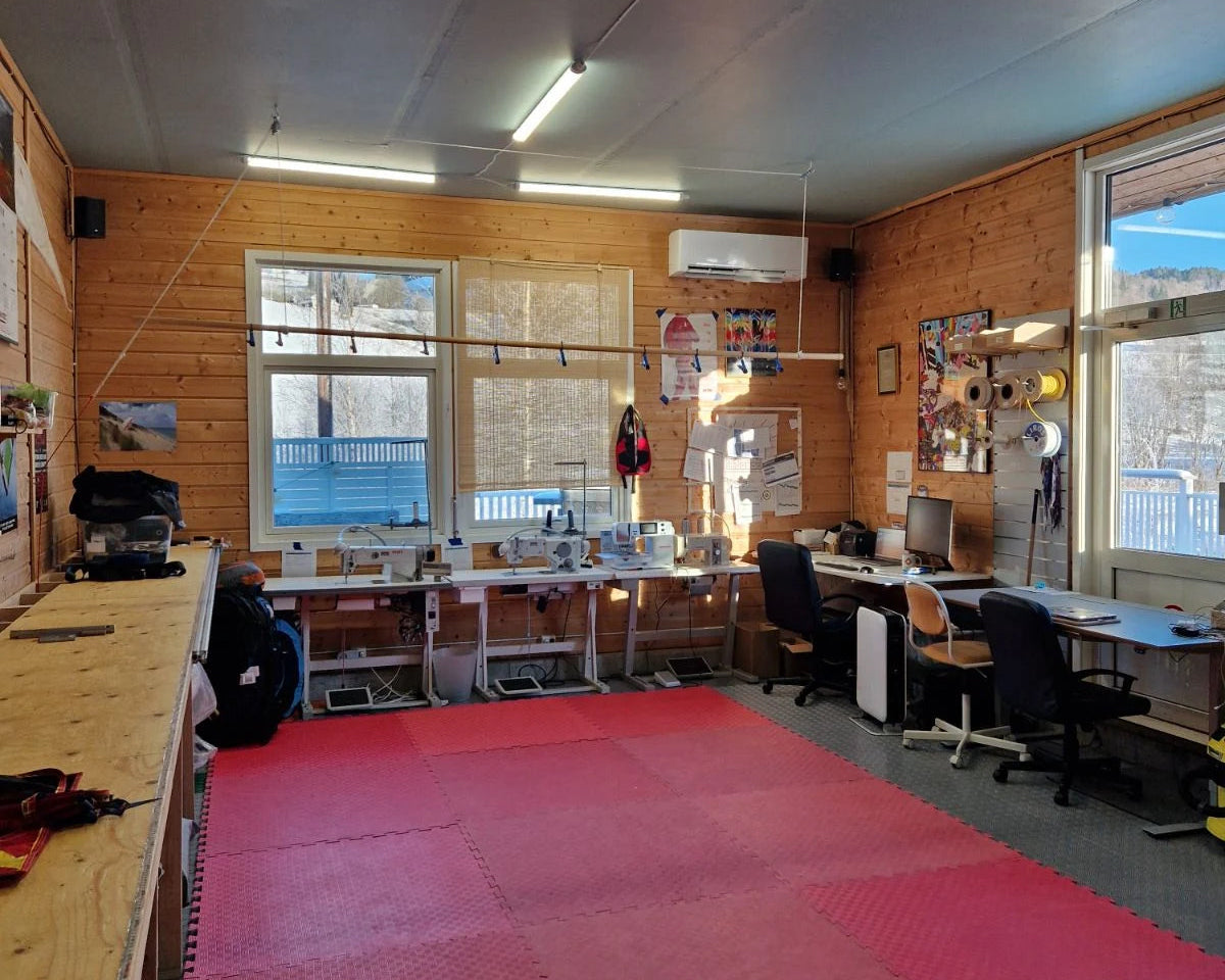 Endelig innendørs. Vi fikk oss et herlig lite butikklokale på Voss Fallskjermklubb midt i smørøyet av ivrige fallskjermhoppere. Her storkoste vi oss i hele 3 år! I tillegg ble det pop up butikk på Tønsberg fallskjermklubb.