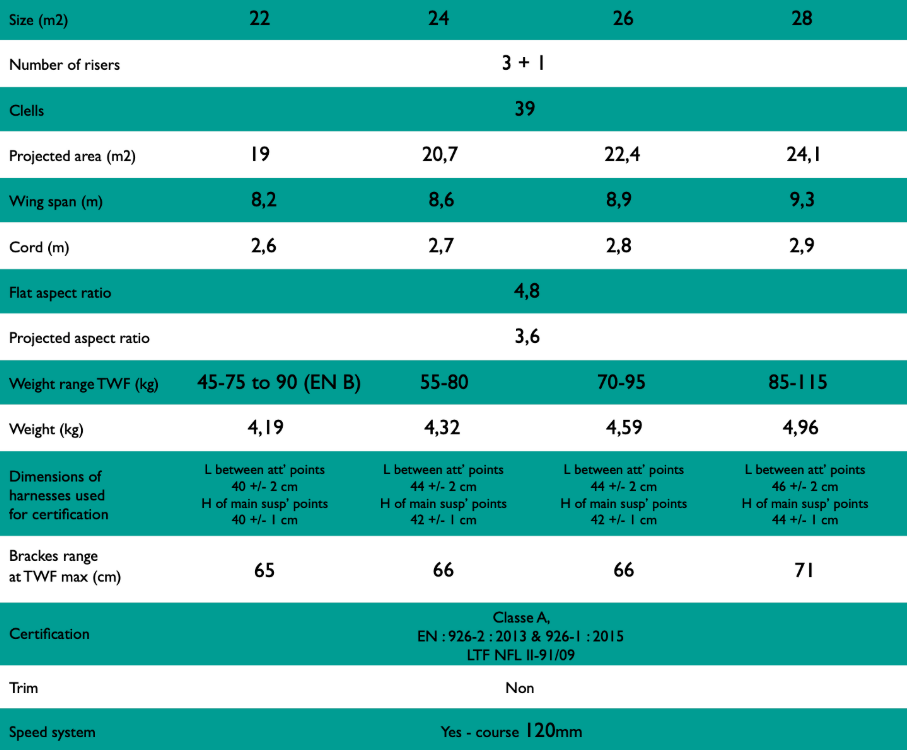 • Erfarne piloter som ønsker en allsidig vinge med god ytelse og høy passiv sikkerhet