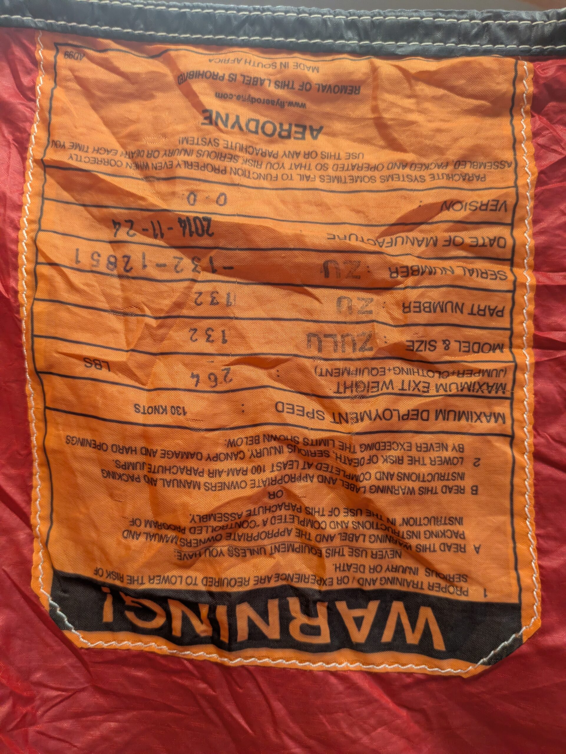- Aerodyne Zulu 132 ZPX D.O.M 11/14. Duken er i god stand. Noe slitasje på slider og X-ports, men dette er vanligere på ZPX-skjermer. Ikke behov for utbedringer. Originalt linesett. Liner gode for 50-100 hopp til.
